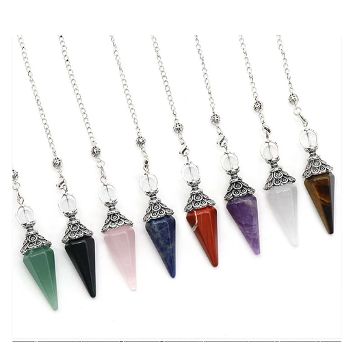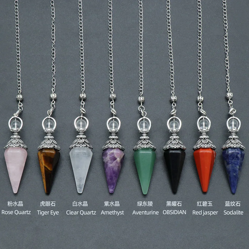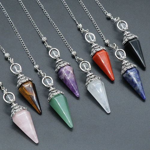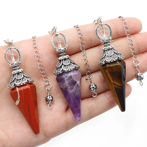 Natural Stone Crystal Reiki Pendulum Rose Quartz Amethysts Hexagonal Cone Shape Charm for Jewelry Making Necklace Accessories