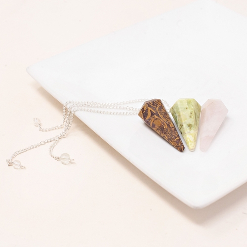 Let the crystal choose you! Upon your order request, we will tune into what pendulum crystal is most aligned for you, purely guided by intuition and assisted by pendulums, this is the pendulum surprise! The perfect crystal accessories for you, and will be sure to make the best gift for her or him.